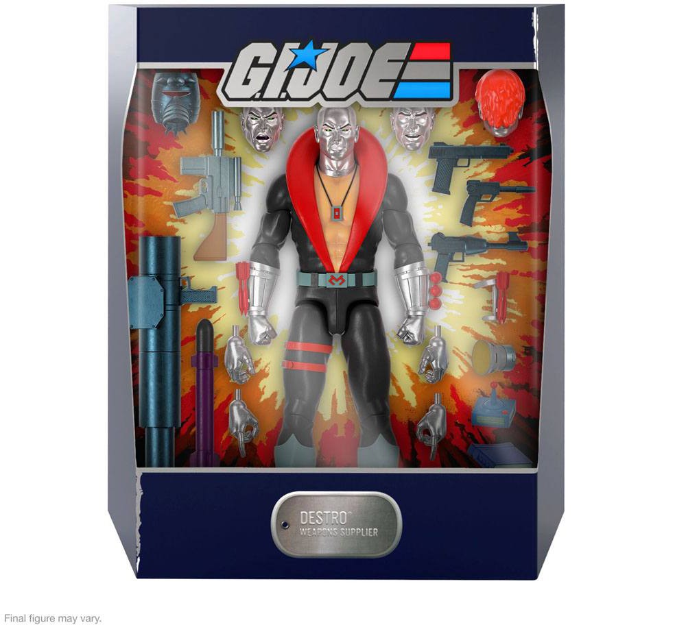 Denna skräddarsydda helt ledade GI Joe ULTIMATES!-actionfigur av Destro kommer med utbytbara huvuden och händer samt över ett dussin extra vapen och tillbehör!