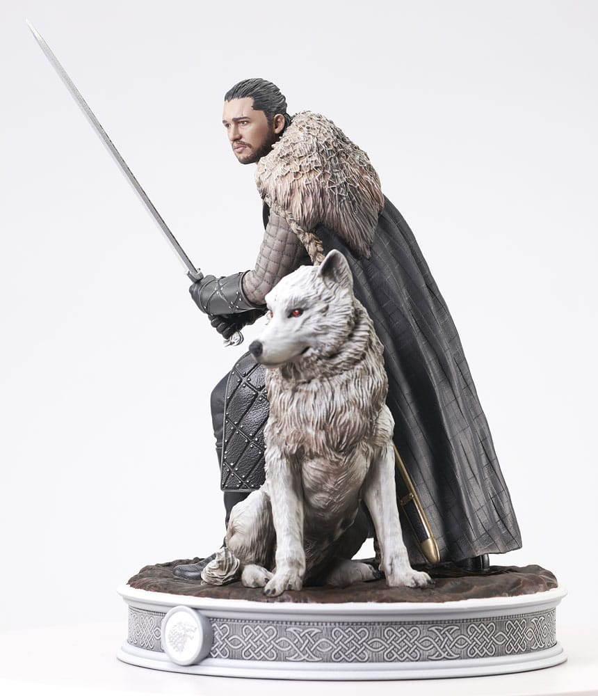 It's an all-new product line from Diamond Select Toys, based on the hit HBO series Game of Thrones! In this inaugural sculpture, Jon Snow crouches, sword at the ready, as his injured direwolf Ghost looks on. Both are in their Season 8 appearances, and this piece measures 10" to the tip of Jon's sword. It comes packaged in a full-color window box. Designed by Nelson X. Asencio, sculpted by Ed Trujillo.