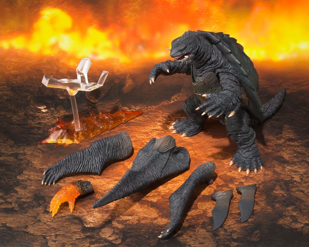 This bulky, awesomely detailed Gamera is one figure fans won't want to miss. In addition to the optional burning fist, the set includes optional flying mode arms, tail, and waist parts, plus a flying mode stand.