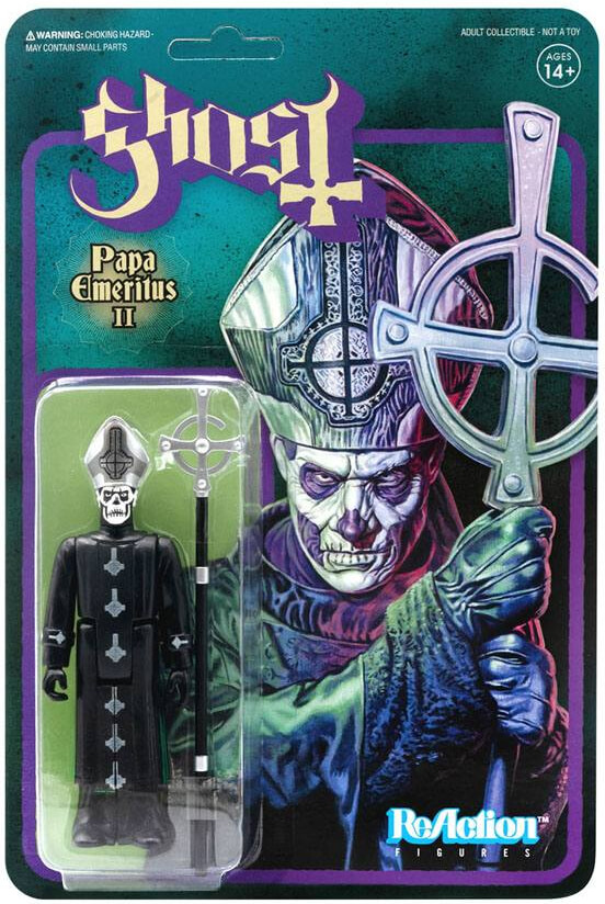 The Super7 x Ghost collaboration continues with the Papa Emeritus II 3.75-inch ReAction Figure! The second incarnation of Papa comes with his Grucifix staff as an accessory.