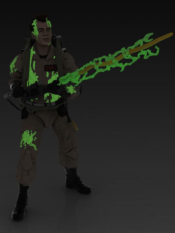 GLOW-IN-THE-DARK FIGURE: This Ray Stantz action figure features glow-in-the-dark ecto-plasm deco for that supernatural "slimed" look. To charge glow-in-the-dark effect, place under light