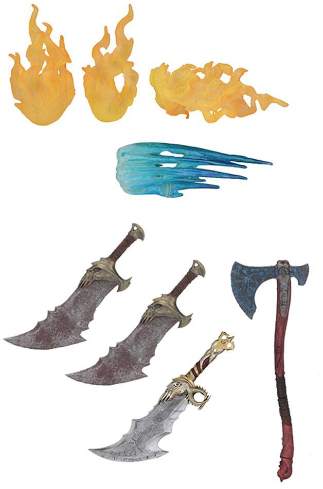 This Ultimate 7" scale action figure 2-pack includes Kratos and his son Atreus. Kratos features a new aggressive head sculpt, new Mimir head on right hip, new gauntlets, new hands, new collapsed shield, new blades, and new fire and frost effects for weapons and hands, as well as 36 points of articulation. The all-new Atreus has over 25 points of articulation and comes with bow and arrows.