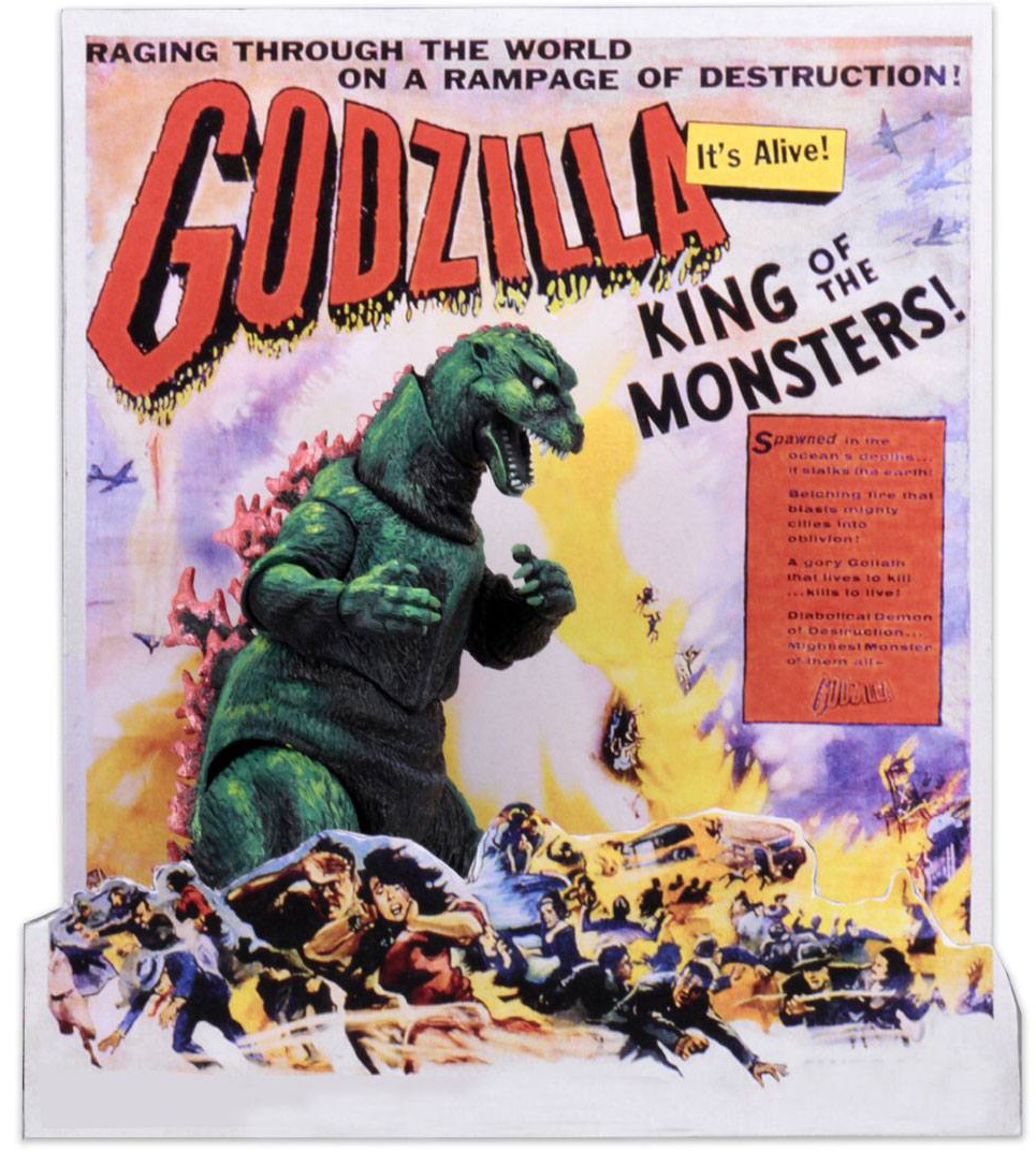 This version of the beloved monster is based on the one-sheet poster for movie's 1956 U.S. release, Godzilla, King of the Monsters!