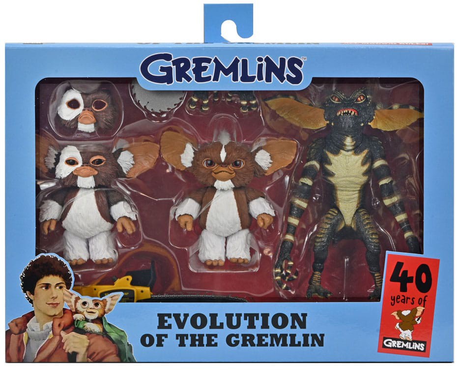 Du kan reglerna: Blöt inte ner dem. Håll dem borta från starkt ljus. Och för guds skull, mata dem inte efter midnatt! Håll dessa enkla riktlinjer i åtanke, så kanske du har en chans när du tar hem NECA:s ”Evolution of a Gremlin” 40th Anniversary Box Set. Gå från Mogwai till Gremlin med detta actionfigur 3-pack som firar den klassiska semesterskräckfilmen från 1984, Gremlins! Denna uppsättning innehåller artikulerade figurer av Gizmo, Mogwai Stripe och Gremlin Stripe - inklusive syntetiskt hår. Gizmo och Mogwai Stripe har poserbara ögon, och Gizmo har två utbytbara ansiktsplattor. Filmkorrekta tillbehör inkluderar motorsåg, skateboard och sågklinga! Levereras i samlarvänlig fönsterförpackning.