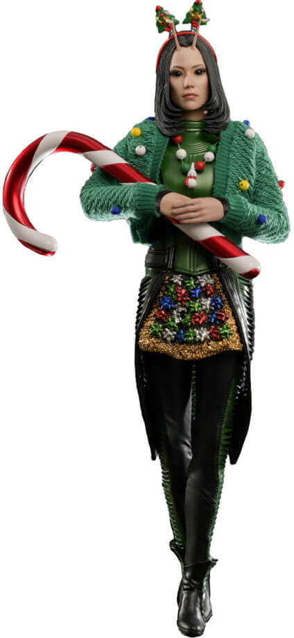 The highly-accurate Mantis collectible includes a meticulously crafted head sculpt with signature antennae, specialized physique, finely tailored outfit strictly faithful to the screen appearance, a delicately designed green holiday sweater with pompom, an array of holiday accessories such as Christmas tree headband, pompom necklace, gift bows apron, giant candy cane, sunglasses and Marvel action figure stand.