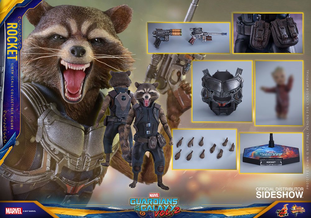 The Guardians are back! Star-Lord's gang of misfits will continue their galaxy-saving adventures while exchanging banter with each other in the upcoming sequel to the wildly popular Marvel Studios blockbuster. All eyes are on how the story will unfold with exciting new characters to meet and new worlds to explore in this outing. Sideshow and Hot Toys are happy to kick-off the sixth scale collectible figure series from Volume 2 with Rocket, the fan-favorite space raccoon with attitude to spare!