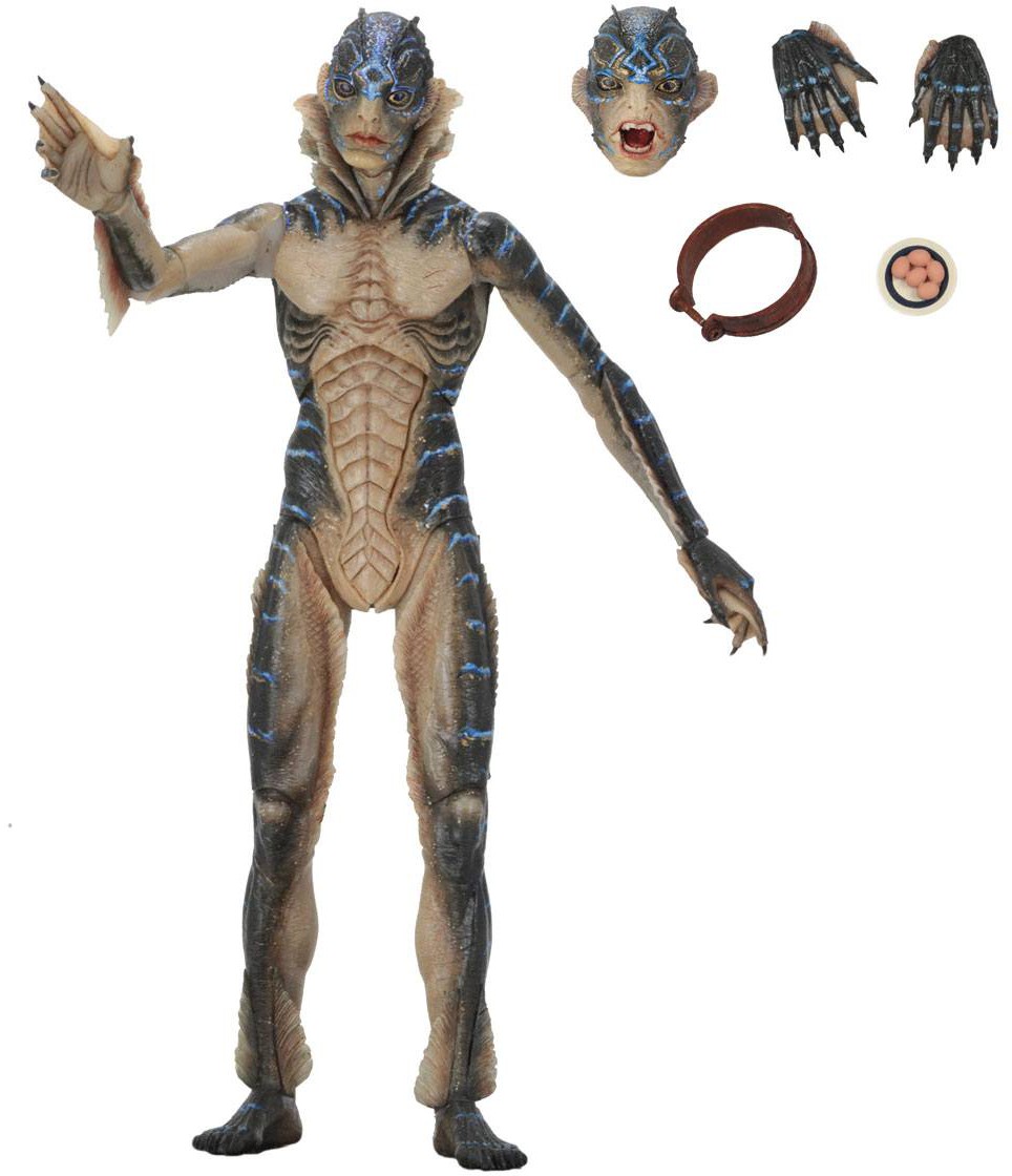 From the acclaimed film The Shape of Water, the Amphibian Man stands approximately 20 cm tall, is super-poseable and comes with removable shackles, interchangeable head and display base.
