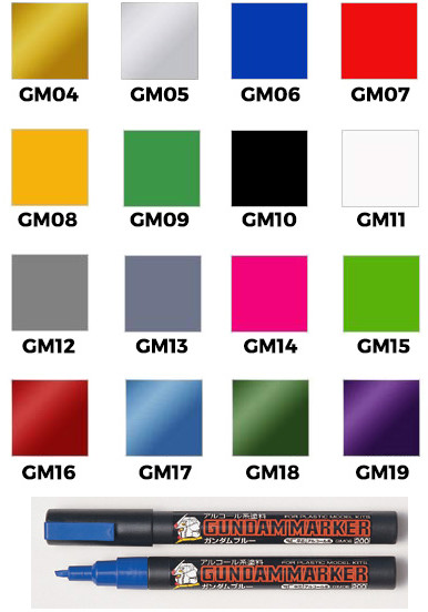 Gundam Marker för målning av Gundam byggsatser. Pennorna har en relativt bred spets.