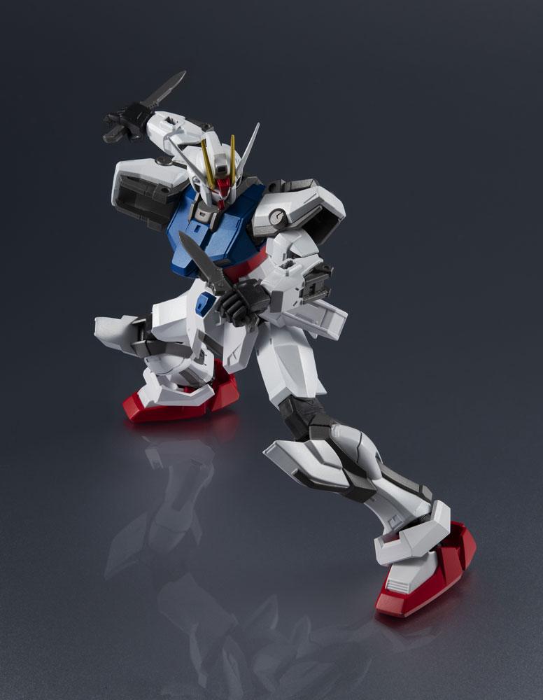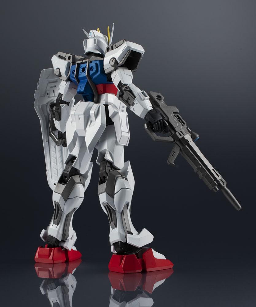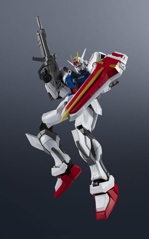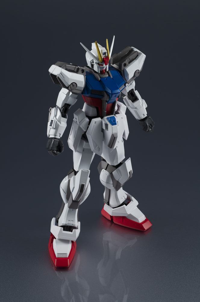 STRIKE GUNDAM ROLL OUT! Part of the third wave of figures added to the popular and highly posable Gundam Universe line developed for North America, and enjoyed all over the world. This figure of the Strike Gundam immortalizes the classic mobile suit! It includes an optional pair of hands, two "armor schneiders," a beam rifle, a shield, and a Tamashi STAGE connector joint.
