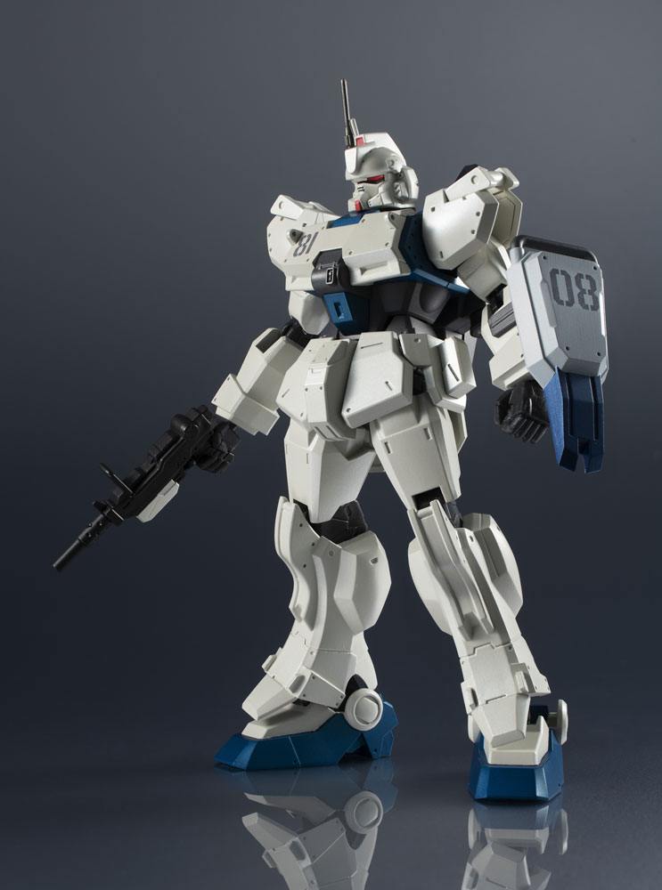 This variant of the Gundam Ground Type built from spare parts made a name for itself under the pilot Shiro Amada. Part of the third wave of figures added to the popular and highly posable GUNDAM UNIVERSE line developed for North America, and enjoyed all over the world. This figure of the Ez-8 immortalizes the classic mobile suit! It includes two beam sabers, rifle, shield, an optional pair of hands, a 100mm machinegun, and a Tamashi STAGE connector joint.