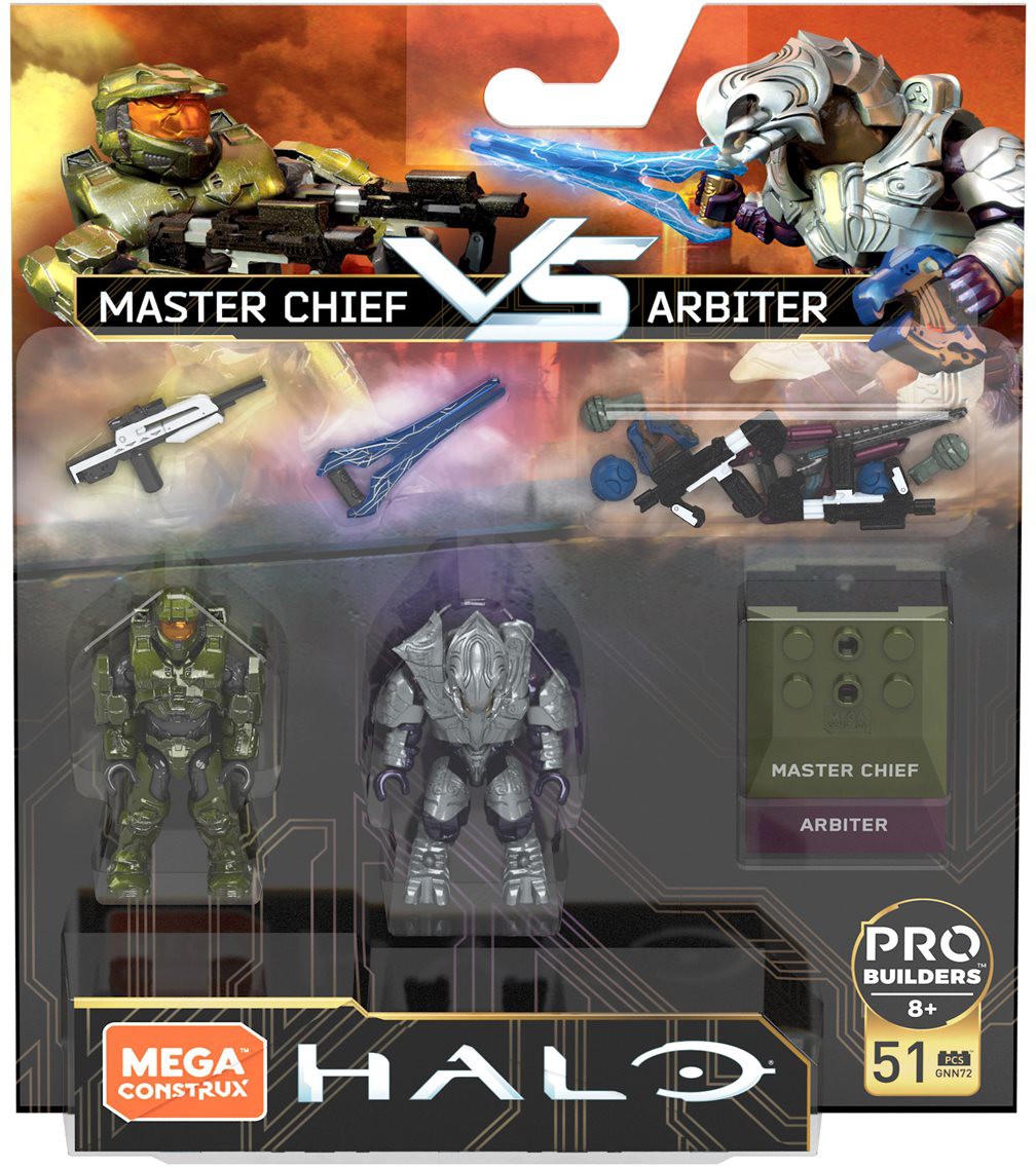 This Mega Construx Final Showdown Mini-Figure 2-Pack includes: Mega Construx Master Chief vs. Arbiter.
