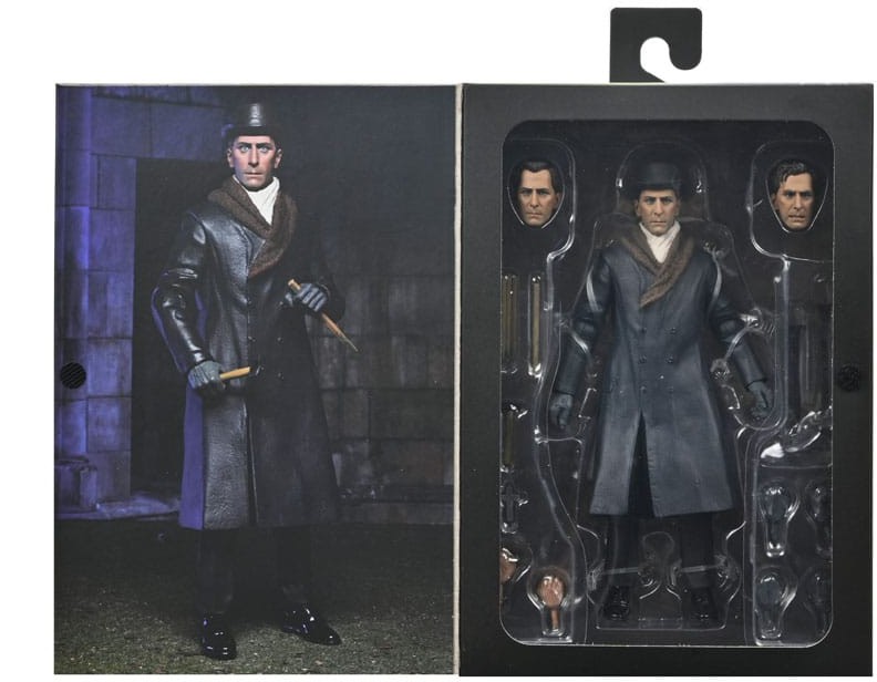 Peter Cushing plays the iconic character Van Helsing, who is sent to destroy Dracula, as played by Christopher Lee. This Ultimate Van Helsing stands in 7-inch scale and features an interchangeable waist for an alternate look in either his vest or long coat.