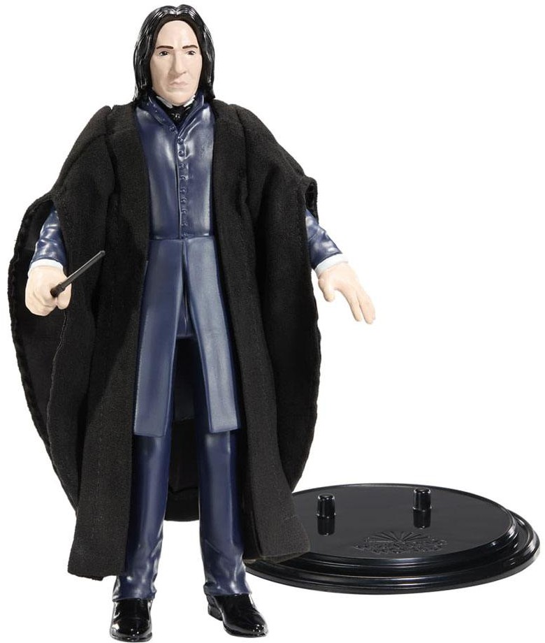 Snape comes complete with his wand and is dressed in his Hogwarts robes.