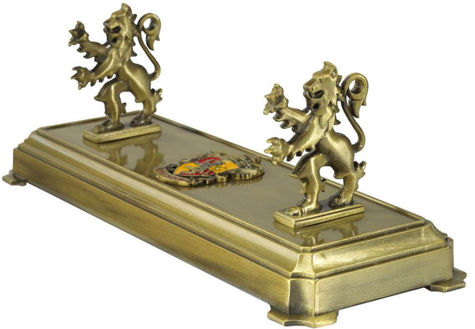 The Noble Collection is pleased to announce five new wand stands. Measuring approximately 20 cm in length, 7 cm in height and 7 cm in depth. Made in die cast metal with hand enamelled crest. Presented in a four colour box.
