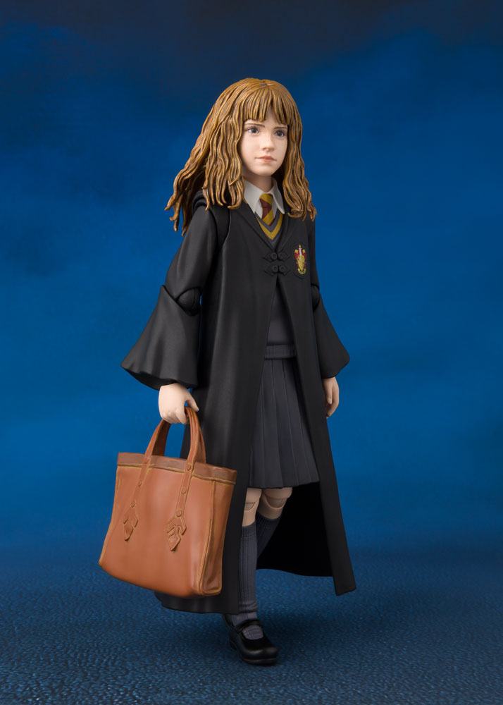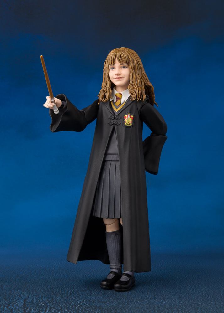 Harry Potter's friend Hermione Granger joins the S.H.Figuarts series! This accurately sculpted, digitally colored, and highly posable action figure comes with a magic wand, a textbook, a purse, and the Philospher's Stone. The set also includes optional facial expression part, three pairs of optional hands and a feather accessory.