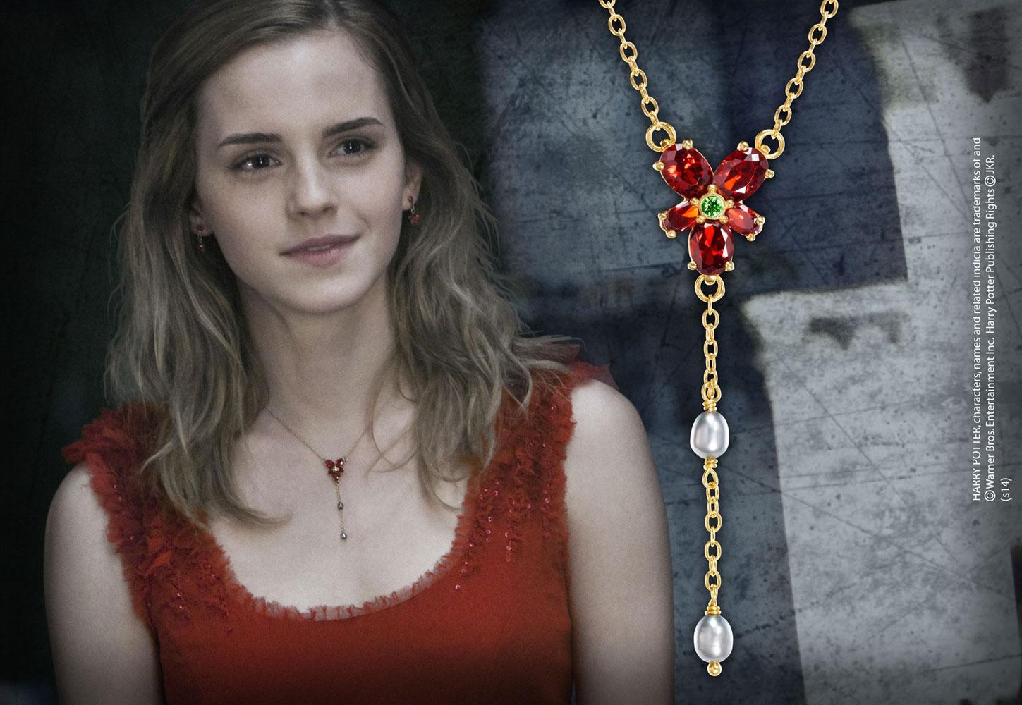 Exakt replika som Hermione Granger bär i Harry Potter and the Deathly Hallows. Tillverkad i sterlingsilver och dekorerad med kristaller, facetterat glas och sötvattenspärlor. Halsbandet mäter ca 45 cm.