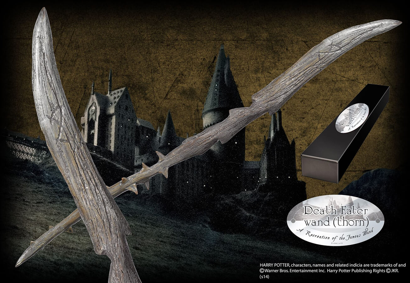 Denna välgjorda replica från Noble Collection är en detaljerad rekreation av en Death Eater trollstav. Den handmålade trollstaven är gjord i resin och levereras med en karaktärsspecifik namnbricka i en snygg samlarvänlig låda.