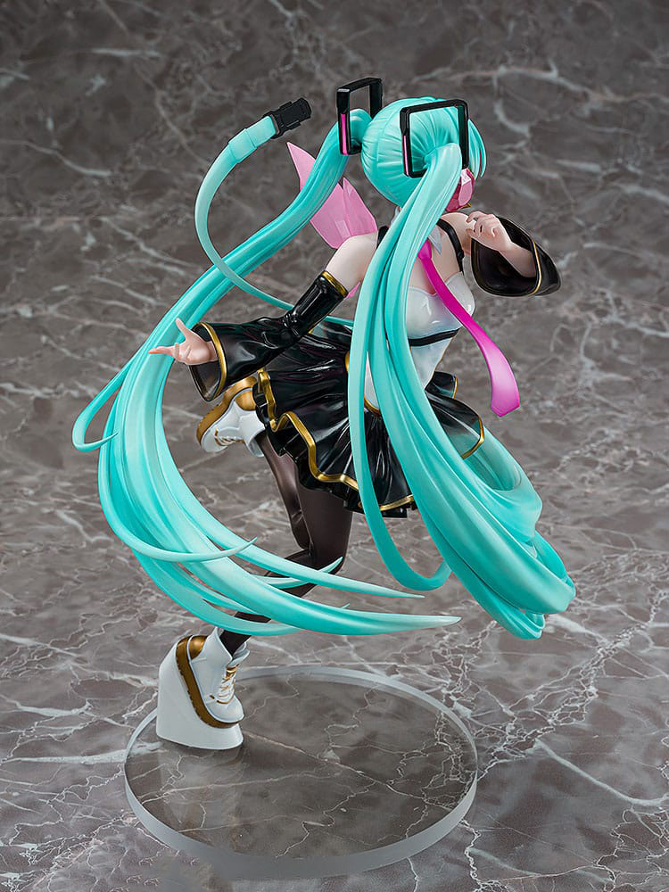 På figuren har hennes kostym designats om för att ge intryck av att hon sjunger och dansar på scenen. Klänningens torso har ett glansigt tyg, medan armskydden och kjolen är gjorda av klara delar med en målad gradient, för en lättviktseffekt. Slutresultatet är en figur gjord med noggrann uppmärksamhet på de olika texturerna. Vi hoppas att du kommer att njuta av Mikus söta leende till fullo vid din sida.