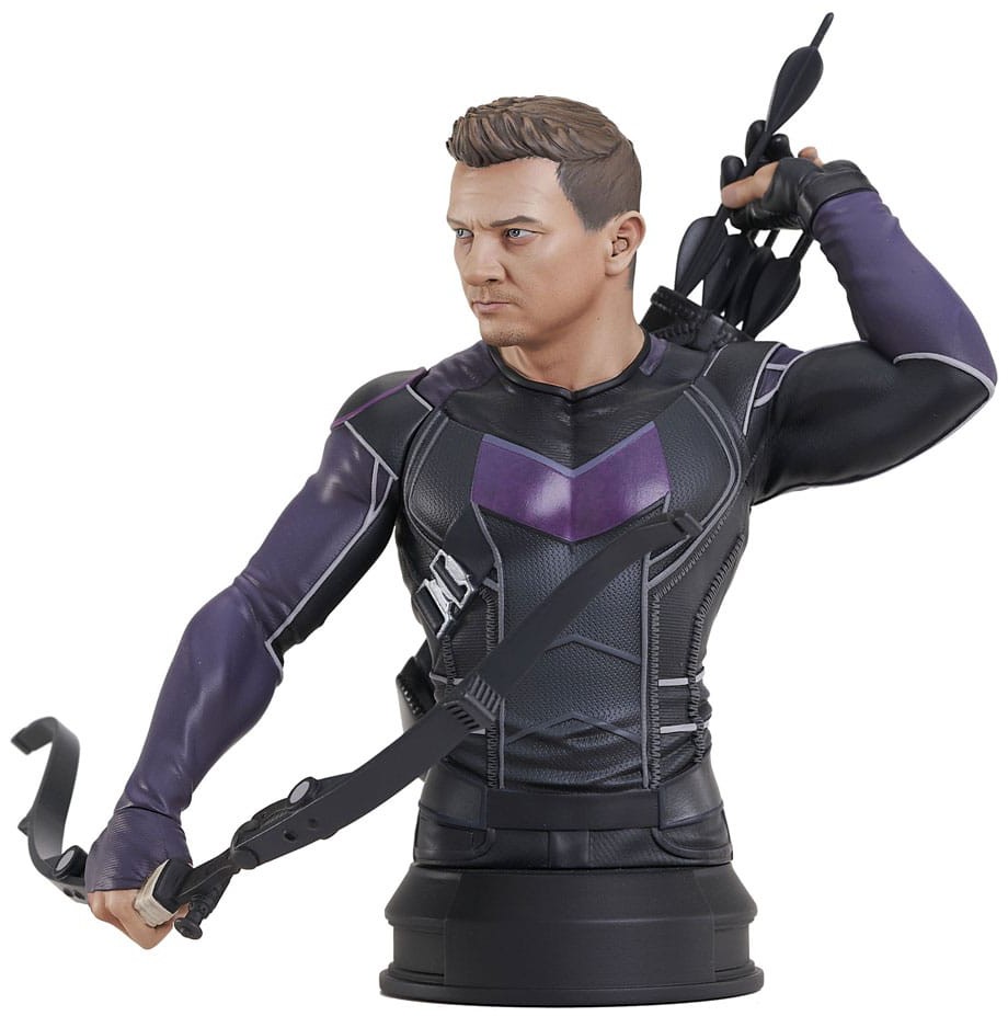 Den hämnande bågskytten har anlänt i den Marvel-filminspirerade serien av minibyster! Denna byst av Hawkeye i skala 1:6 föreställer Clint Barton när han drar en pil från sin koger, med båge i handen, och är 15 cm hög på en pedestalbas. Den är begränsad till endast 3 000 exemplar och levereras med ett numrerat äkthetsintyg i en färgglad låda. Designad av Nelson X. Asencio, skulpterad av Juan Ramos.