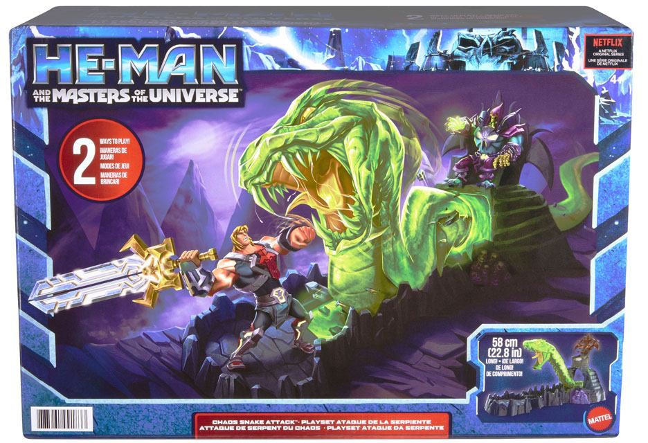 Var vänlig ställ din fråga om produkten "He-Man and the Masters of the Universe - Chaos Snake Attack Playset" nedan, så svarar vi så snart som möjligt!
