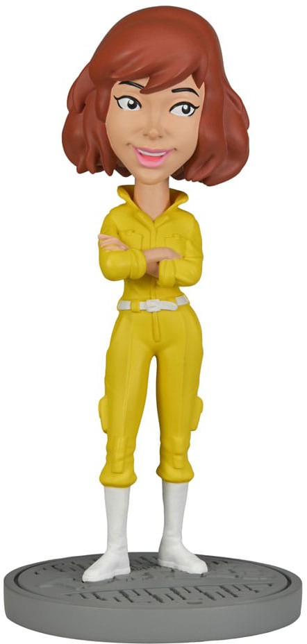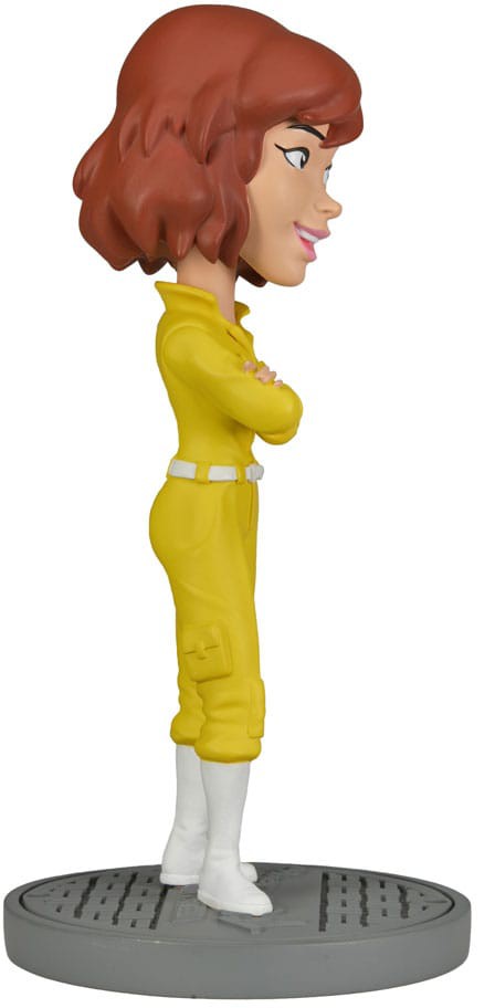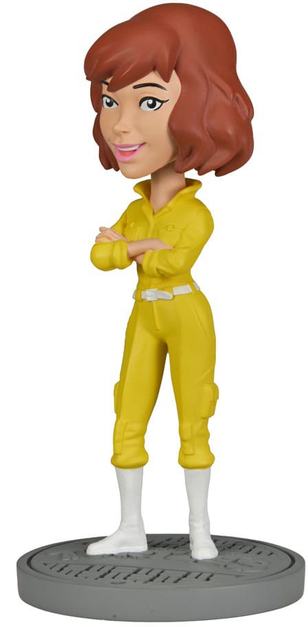Based on the classic 1980s Teenage Mutant Ninja Turtles cartoon series! After being accidentally exposed to radioactive ooze, four ordinary household pets are transformed into a band of wisecracking, pizza-loving, villain-dicing adolescent reptiles. This addition to NECA's popular Head Knocker line brings you intrepid reporter April O'Neil, cast in resin and then hand painted for incredible detail. Stands over 7 inches tall with bobbling head and comes in collectible matte packaging with spot gloss finish.