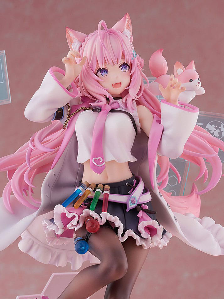 This exquisite figure embodies Koyori's vibrant spirit, depicting her in an exuberant leap, her wide smile radiating warmth and joy, guaranteed to melt your heart. Her pink hair is meticulously sculpted to give it a feeling of airiness, flowing delicately as if caught in a gentle breeze. Not forgetting her animated animal ears and tail, seeming almost alive as they suggest a playful readiness to spring into action.