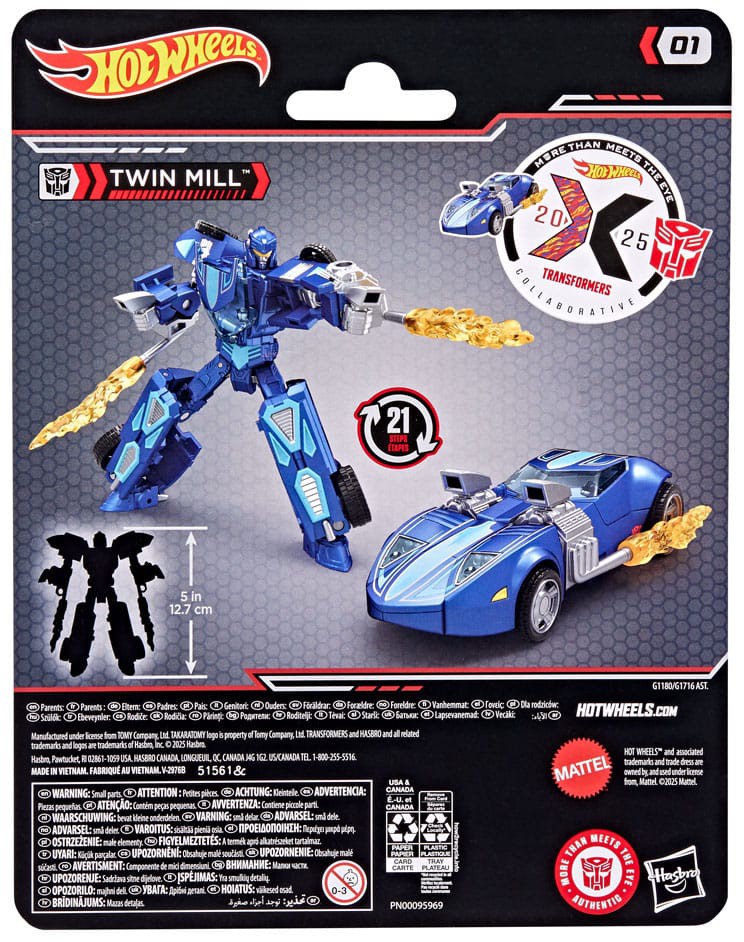 Figuren är cirka 12,5 cm hög och kan förvandlas från robotläge till ett Twin Mill-inspirerat billäge, vilket ger massor av lek- och samlarmöjligheter.