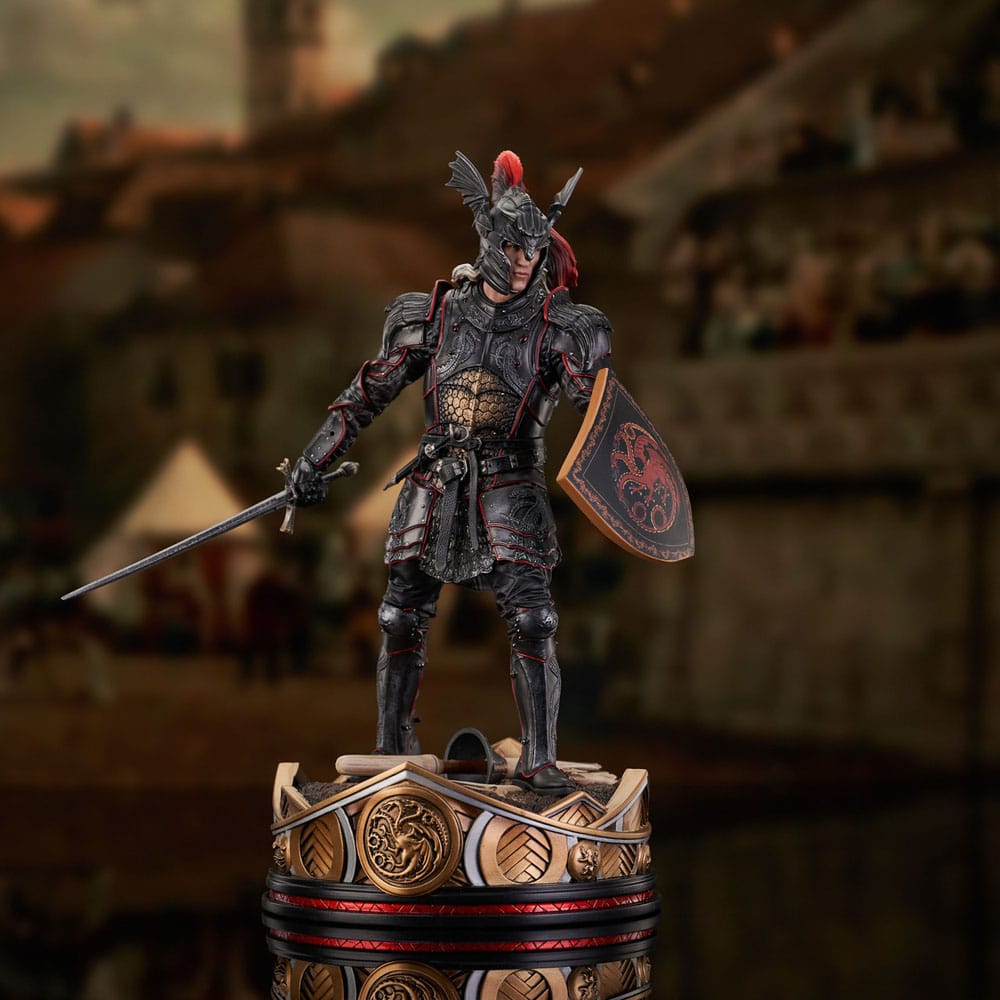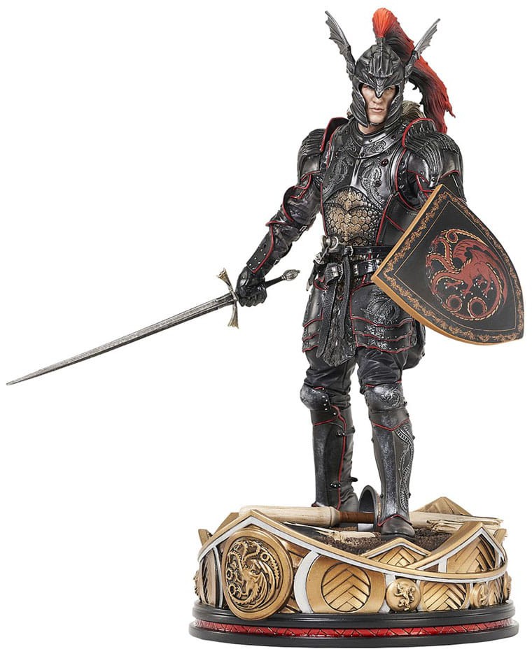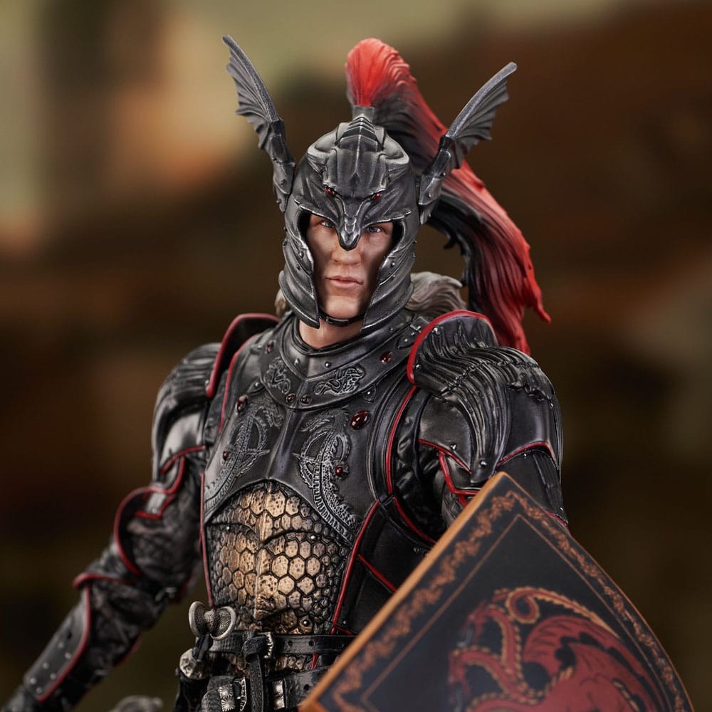 Let the battle commence! The prince of Westeros, brother to the king, and rider of Caraxes, Daemon Targaryen is the first Gallery Diorama based on House of the Dragon! Measuring approximately 11" tall, this PVC statue of Daemon in his full armor is nothing short of magnificent, with his shield in hand and his sword Dark Sister at the ready. It comes packaged in a full-color window box. Designed by Nelson X Asencio, sculpted by Rocco Tartamella!
