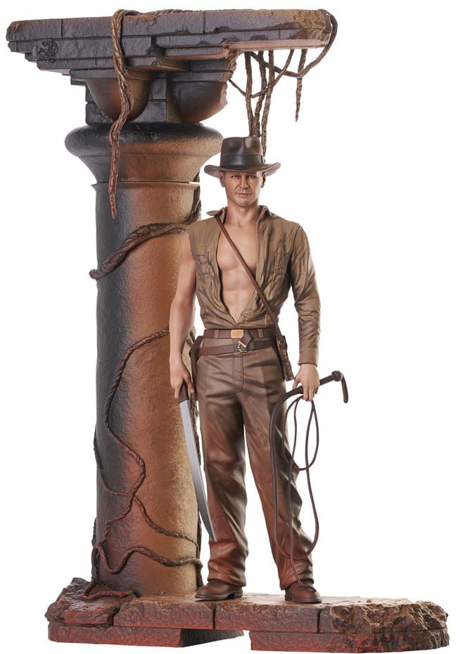 Will you dare enter the Temple of Doom Indiana Jones is seriously considering it in this all-new statue inspired by the legendary sequel's iconic movie poster! Measuring approximately 15" tall, this 1/7 scale statue depicts Indy in his torn shirt, holding a whip in front of a vine-draped pillar. Limited to only 1000 pieces, it comes packaged with a numbered certificate of authenticity in a full-color box.