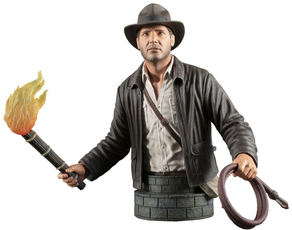 Adventure has a name, and it's Indiana Jones! Now, the legendary archaeologist swings into the Gentle Giant LTD world with a realistic 1/6 Scale Mini-Bust! Measuring approximately 6 inches tall, torch and whip in hand, this highly detailed bust is limited to only 3000 pieces and comes packaged in a full-color box with a numbered certificate of authenticity.