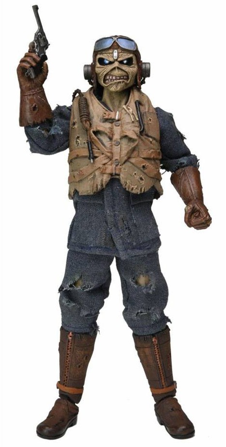 Eddie, the legendary metal mascot, returns! Based on the artwork from Iron Maiden's 1984 "Aces High" single, this 8" tall action figure wears a flight suit based on the Battle of Britain dogfights mentioned in the song's lyrics.
