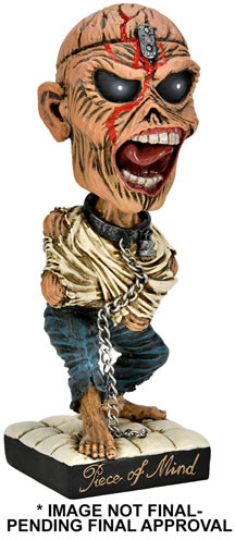 Eddie, den legendariska metallmaskoten, har prytt Iron Maidens albumomslag och merchandise i över 30 år. Nu är han tillgänglig som en handmålad resin Head Knocker från NECA! Denna version av Eddie baseras på konstverket från det klassiska 1983 Piece of Mind albumomslaget och är 20 cm hög med bobblande huvud. Kommer i samlarvänlig förpackning med spot gloss finish.