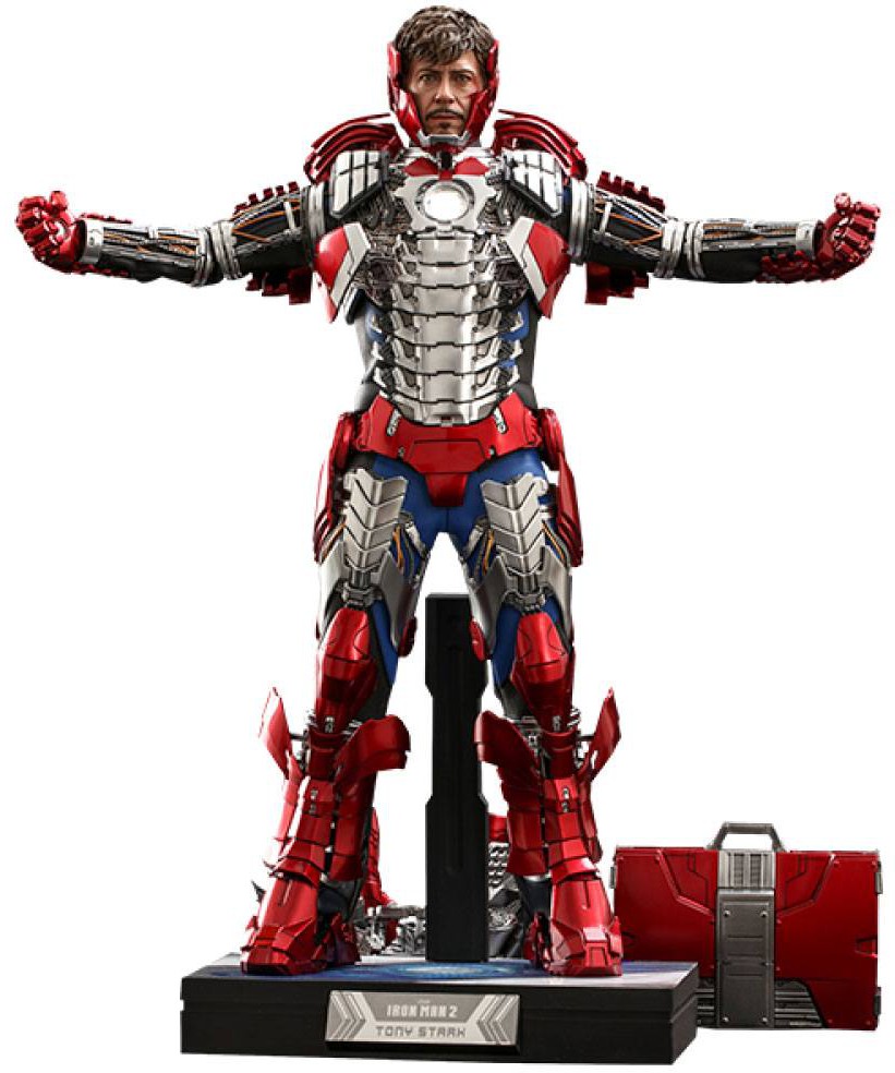Celebrating the 600th creations of Hot Toys Movie Masterpiece Series, we proudly present a brand new Tony Stark (Mark V Suit up Version) Deluxe Sixth Scale Collectible Figure, winds through Tony's racing tracksuit and the visually appealing Iron Man Mark V's suit up scene in Iron Man 2 with a selection of beautifully engineered armor pieces and accessories attachable over the figure.