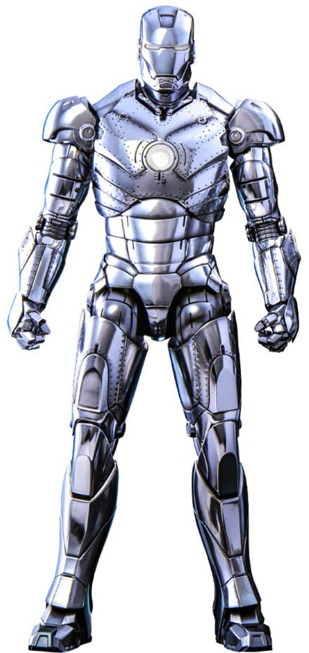 Iron Man Mark II (2.0) Sixth Scale-figur i silverkrom är vackert tillverkad av gjutna material och återskapar troget den ikoniska rustning som sågs i den första Iron Man-filmen. Har en nyutvecklad huvudskulptur med fantastisk likhet och separat rullande ögonglobssystem; en utbytbar Iron Man-hjälm med LED-ljusögon; LED-ljusdesign på bågreaktorn och handflatorna för att skapa den iögonfallande upplysta effekten. Utbytbara öppna rustningsdelar som ger ytterligare möjligheter att visa figuren i olika stadier av rustningsmonteringen och visa hur Iron Man förvandlas. En specialdesignad figurbas som är inspirerad av Tony Starks verkstad ingår för att göra utställningen mer verklighetstrogen, så att det känns som om figuren verkligen är en del av Starks värld.