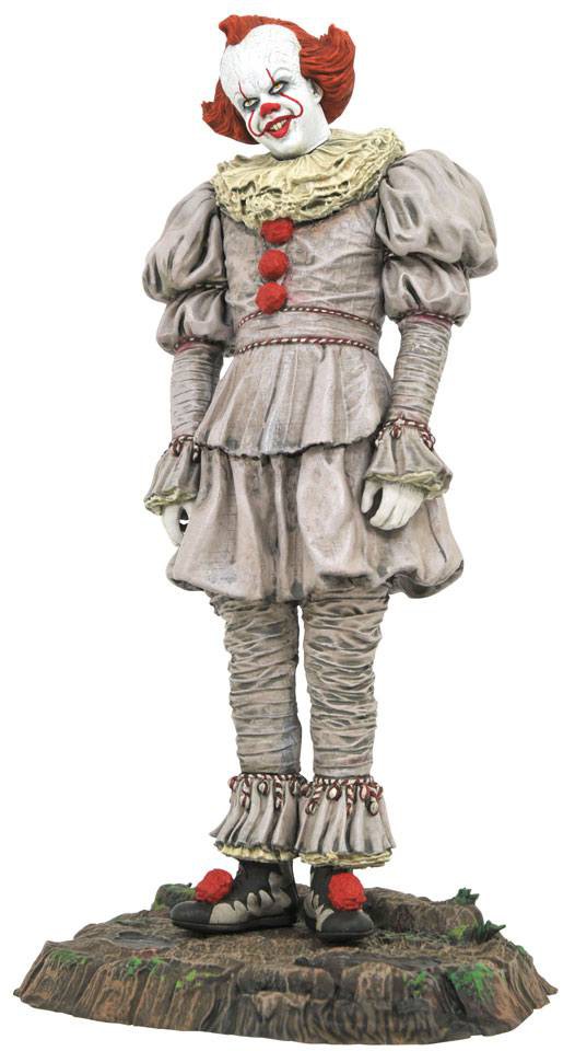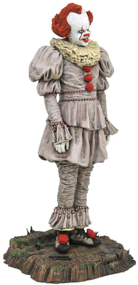 A Diamond Select Toys release! Pennywise is back, and he's creepier than ever! The star of It Chapter 2, Pennywise the Dancing Clown lurks in the swamp in this all-new Gallery Diorama. Tilting his head to one side as if sizing you up for a meal. This sculpture is made of high-quality PVC and features detailed sculpting and paint applications. Packaged in a full-color window box.