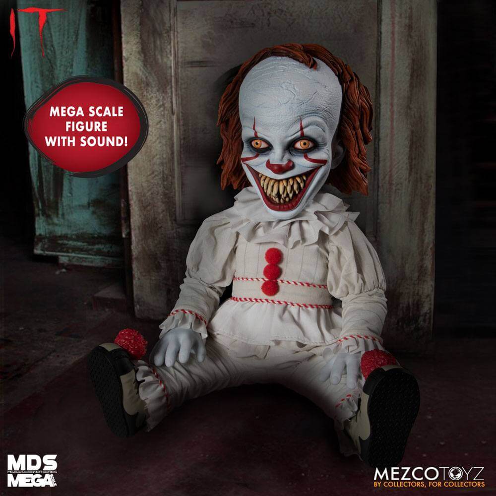 MDS Mega Scale IT: Talking Sinister Pennywise har en helt ny huvudskulptur av den formskiftande clownen med ett grimaserande leende från öra till öra. Om det inte räcker för att underblåsa dina mardrömmar, säger han också sex av sina mest kända fraser från filmen, inklusive "god, smaklig, vacker rädsla!"