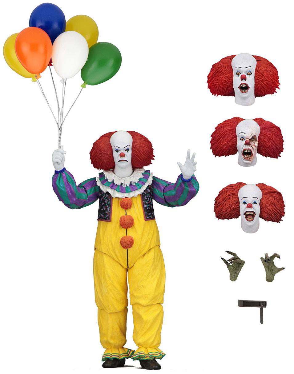 Pennywise is fully articulated and features a total of four interchangeable heads, plus alternate monster hands, noisemaker, bunch of balloons and paper boat. Comes in collector-friendly deluxe window box packaging with opening flap.