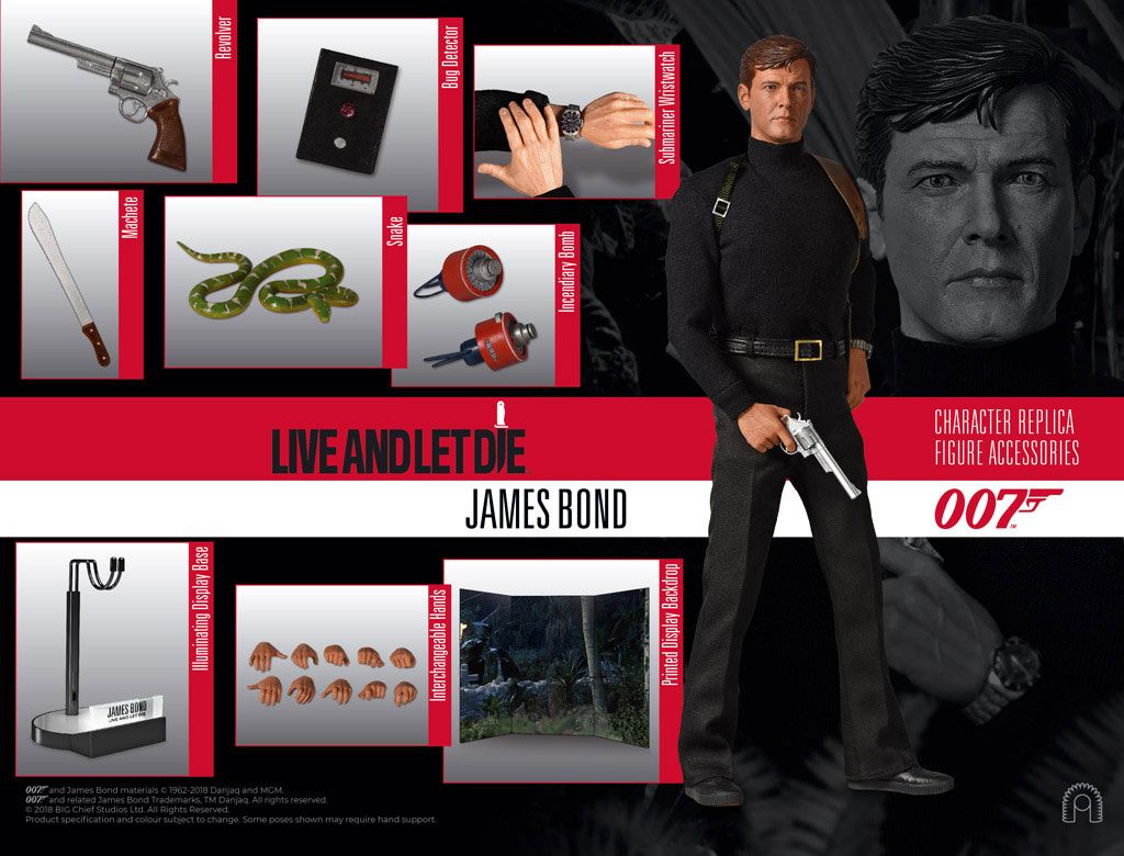 Big Chief Studios are proud to present the James Bond Sixth Scale Collector Edition Figure. From the fully realised portrait of actor Roger Moore to the authentically styled, hand-tailored costume, our artists have developed the most faithful, meticulously detailed replica in miniature. The figure comes with numerous accessories including a special display base with illuminating character name plaque.