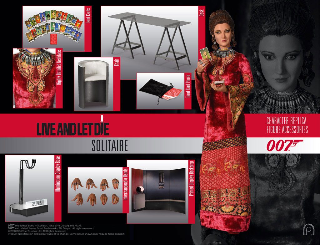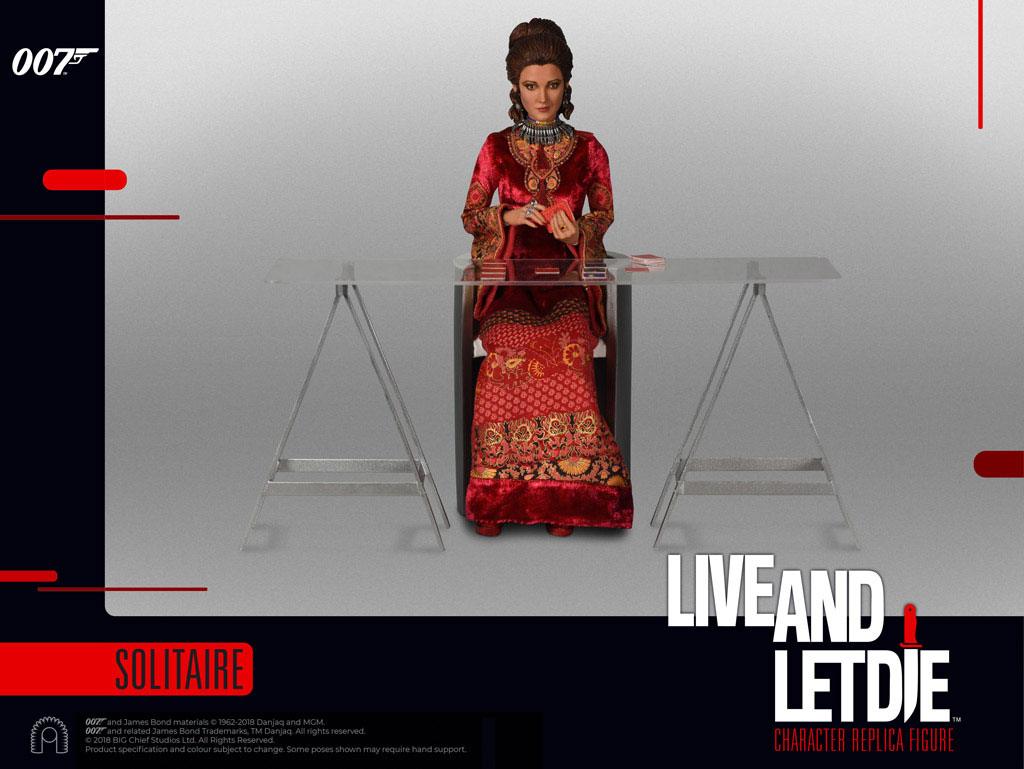 Solitaire is a psychic in the employ of Dr. Kananga. She describes the journey of James Bond through the use of tarot cards. Having been seduced by 007, Solitaire's life is placed in grave danger.