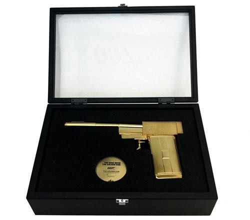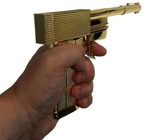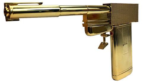 The prop is the signature weapon of the '$1 million dollar per shot' assassin, Francisco Scaramanga, as featured in the The Man With the Golden Gun (1974). Scaramanga's Golden Gun was made up of seemingly innocuous separate elements that when combined created a deadly single shot handgun, a weapon that was not quite deadly enough to best 007. The Golden Gun is certainly one of the most iconic weapons of the James Bond series, and perhaps one of the most widely recognized cinematic weapons of all time.?