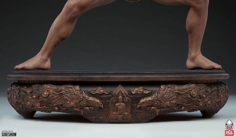 Inspired by Van Damme's fierce passion for martial arts, the JCVD (Jean-Claude Van Damme) Muay Thai 1:3 Scale Tribute Statue is a mixed media collectible with a fully sculpted physique, sculpted hand-wraps, and traditional-style beige fabric Muay Thai trunks. Taking a wide, powerful stance on a bronze-painted base detailed with dragons, this collectible statue is a must-have for fans of Jean-Claude Van Damme and his legacy in film.
