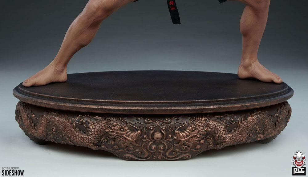 Inspirerad av början av Van Dammes kampsportresa, har denna staty av blandade material en skulpterad kropp och tygkläder i form av svarta shorts med ett gult och ett svart bälte för att hedra hans prestationer. Med en bred, kraftfull pose på en bronsmålad bas med drakardetaljer är denna samlarstaty ett måste för fans av Jean-Claude Van Damme och hans legendariska filmarv.