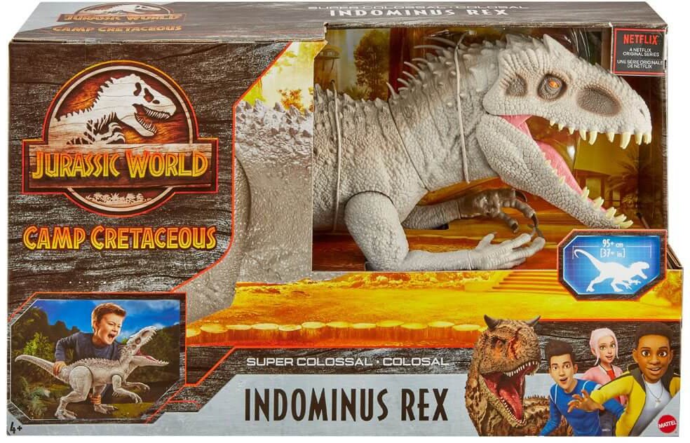 Be a part of the adventure with the Super Colossal Indominus Rex inspired by the Jurassic World animated series, Camp Cretaceous! At approximately 18-in high & 3.5 ft long/45.72 x 104.14-cm, this Super Colossal Indominus Rex figure features realistic skin texture and color authentic to the series. Indominus Rex comes battle-ready with articulated arms and legs, extra-wide jaws that can open and close, and the ability to swallow 20 mini dinosaur action figures whole (sold separately). To release the figures, open the door on the belly. Take home the excitement of Jurassic World with this HUGE Indominus Rex dinosaur action figure! Makes a great gift for ages 4 years old and up especially fans of the Jurassic World, dinosaurs and action play!