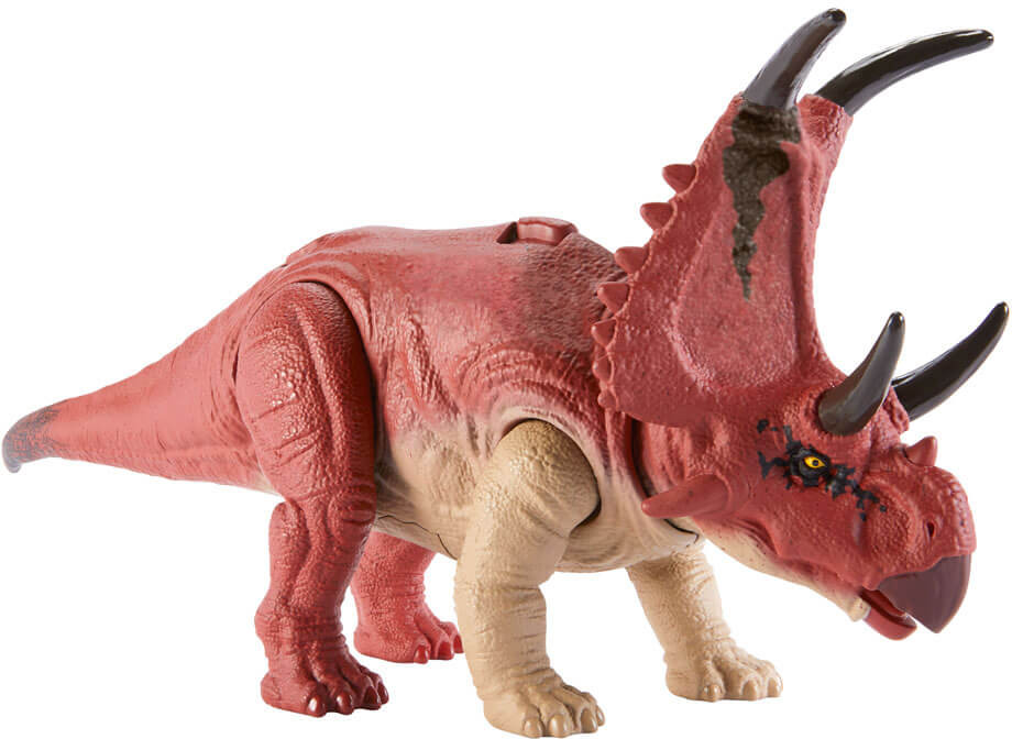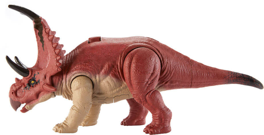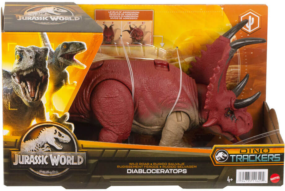 Var vänlig ställ din fråga om produkten "Jurassic World: Dino Trackers - Wild Roar Diabloceratops" nedan, så svarar vi så snart som möjligt!