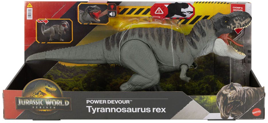 Var vänlig ställ din fråga om produkten "Jurassic World Rebirth: Power Devour - Tyrannosaurus Rex with Sound" nedan, så svarar vi så snart som möjligt!