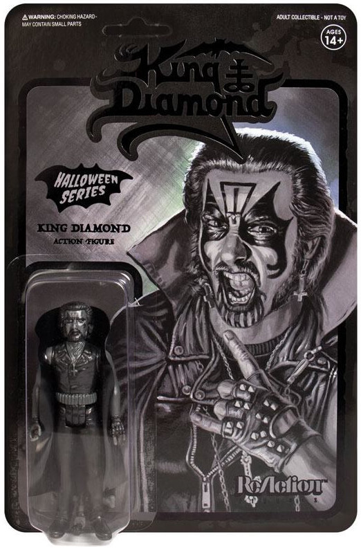 NONE MORE BLACK! The official Super7 x King Diamond alliance continues with the Black-On-Black Metal King Diamond 3.75" ReAction Figure!