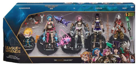 5-pack League of Legends actionfigurer från Spin Master. Figurerna är ca 10 cm höga och levereras med tillbehör och baser att stå på.