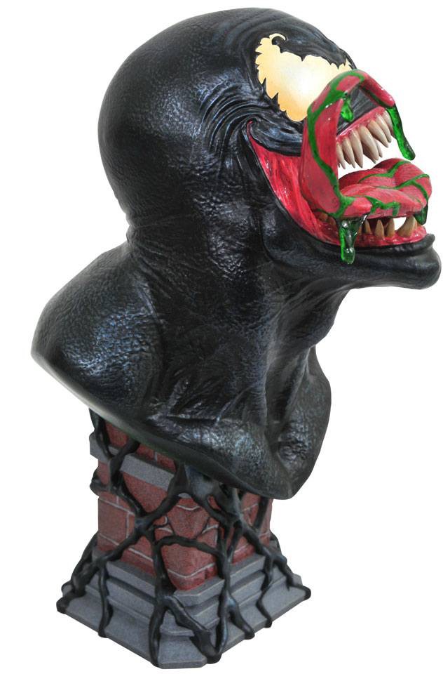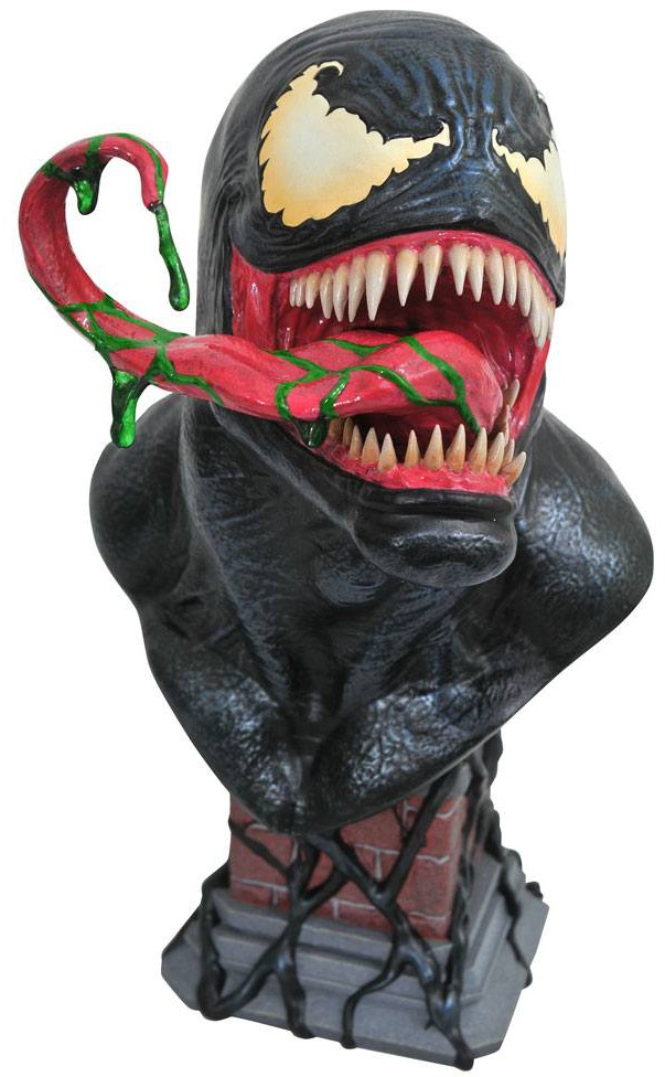 Don't get tongue-tied! Shout out your love for all things Venom with this breathtaking and drool-inducing half-scale bust of Venom! Measuring approximately 10 inches tall, this bust of Spider-Man's least favorite dancing partner is based on a design by Joe Allard, and sculpted by Rocco Tartamella.