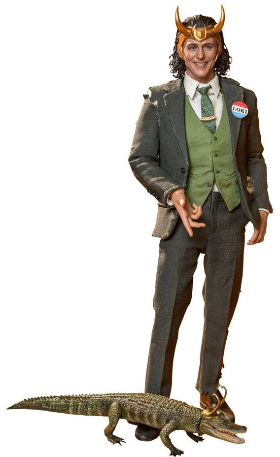 Utsökt utformad baserat på Tom Hiddlestons roll som president Loki i serien, figuren har en nyutvecklad huvudskulptur och hans behornade hjälm med delikat hantverk, valkampanjnål på kostymen applicerad med slitna; ett par dolkar, mycket detaljerade tillbehör som Alligator Loki i en sjätte skala, en käpp, en specialdesignad karaktärsbakgrund med linsformig effekt och ett figurställ med tema.