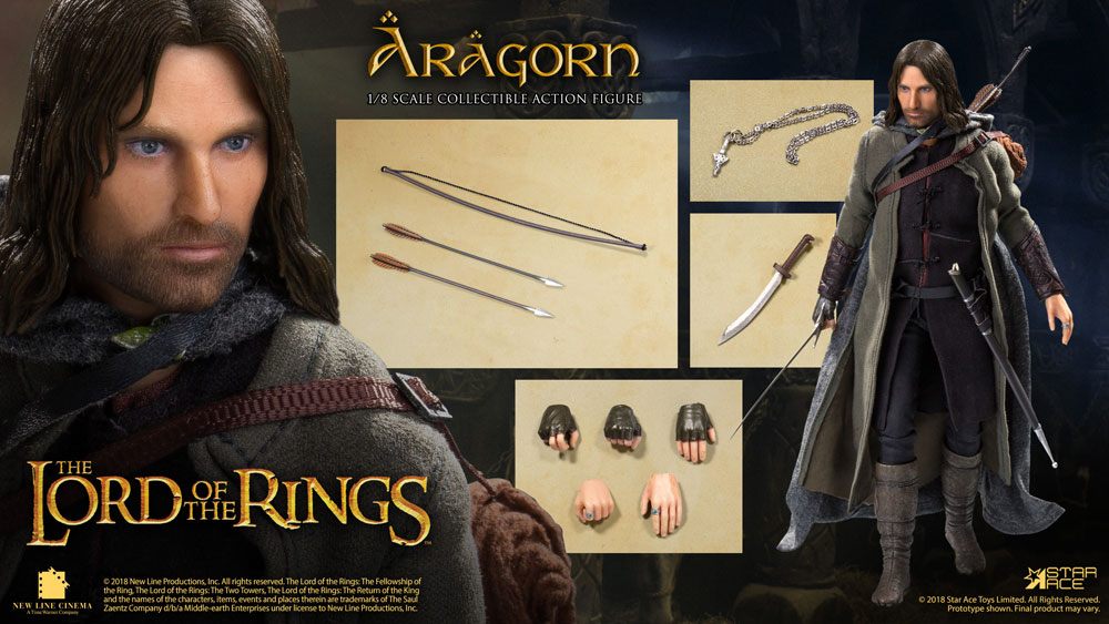 - Fully realized authentic likeness of Viggo Mortensen as Aragorn in the movie "The Lord of the Rings - The Two Towers" with accurate facial expression and detailed skin texture, each head sculpt is specially hand-painted.